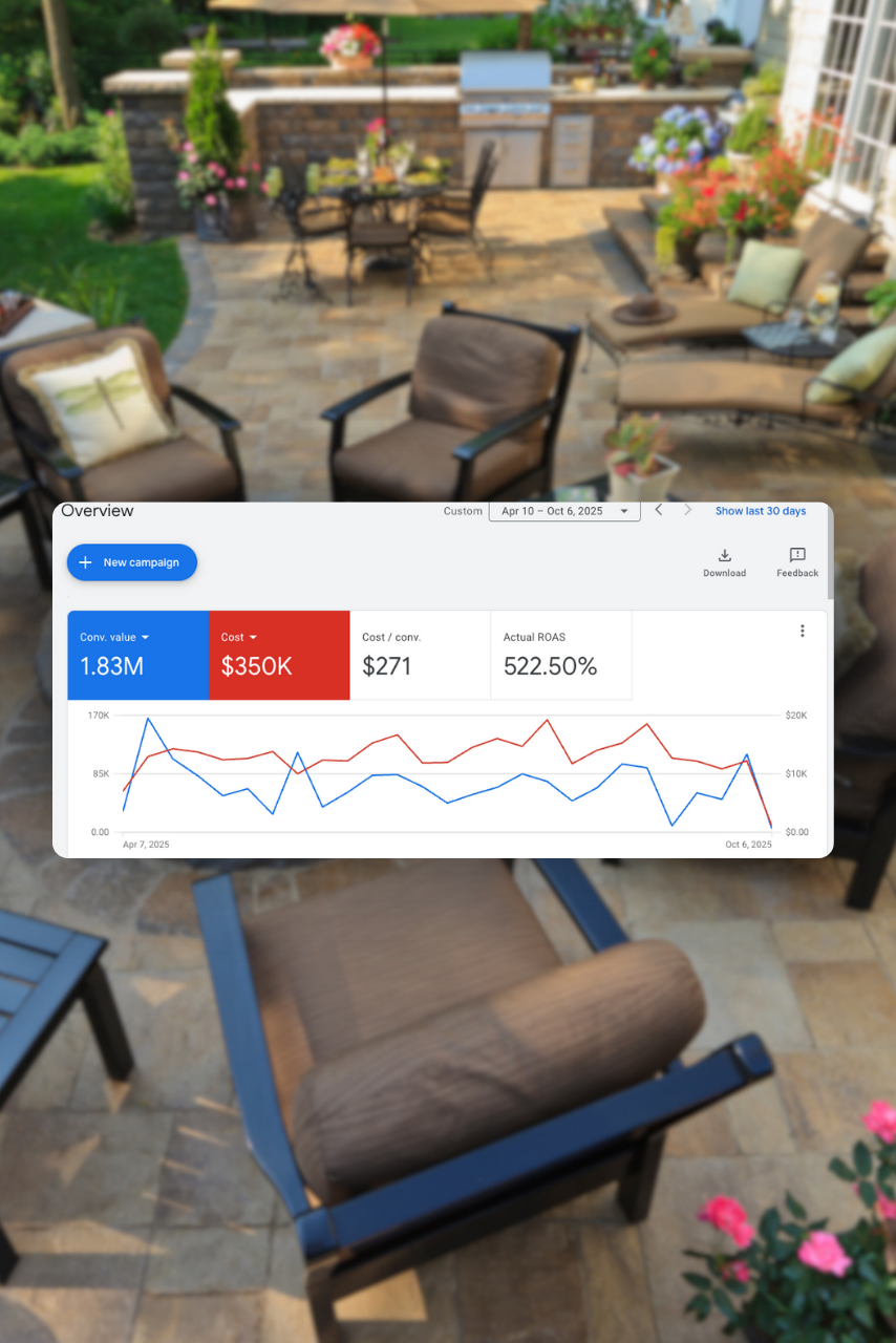 In the last 180 days, we helped an outdoor furniture company generate $1.83M in sales with only $350K in ad spend through highly optimized Google Ads campaigns.