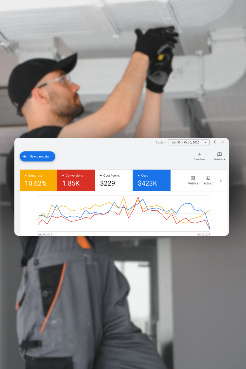 We helped an HVAC company generate over 1,800 high-quality leads through phone calls and form submissions. With a $400K ad spend, they achieved more than $1.5M in revenue through our data-driven Google Ads strategy…
