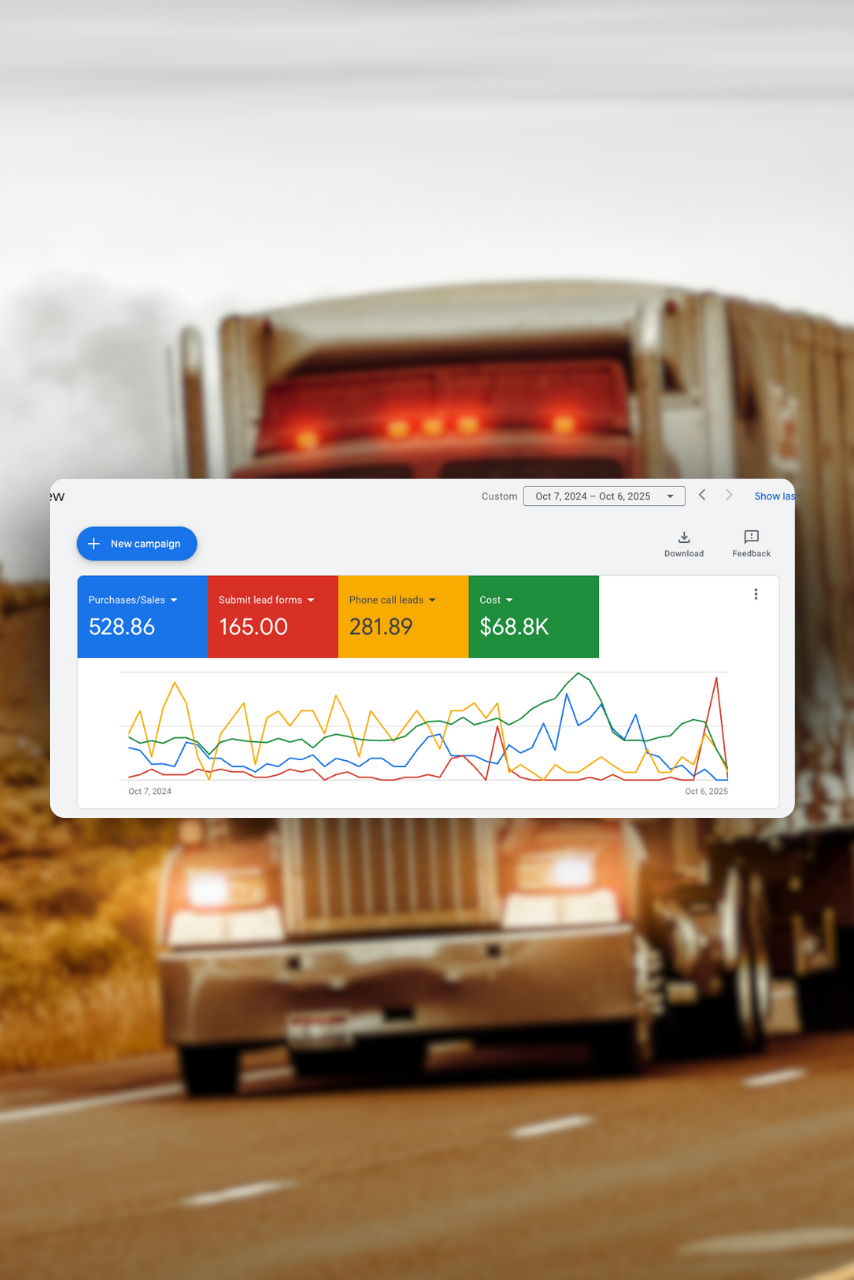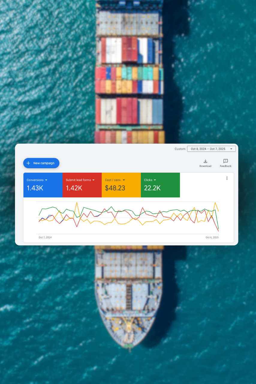 We helped a logistics company generate 1.43K conversions and 1.42K lead form submissions at an average cost per conversion of $48.23, driving over $9M in estimated revenue through our strategic Google Ads management.